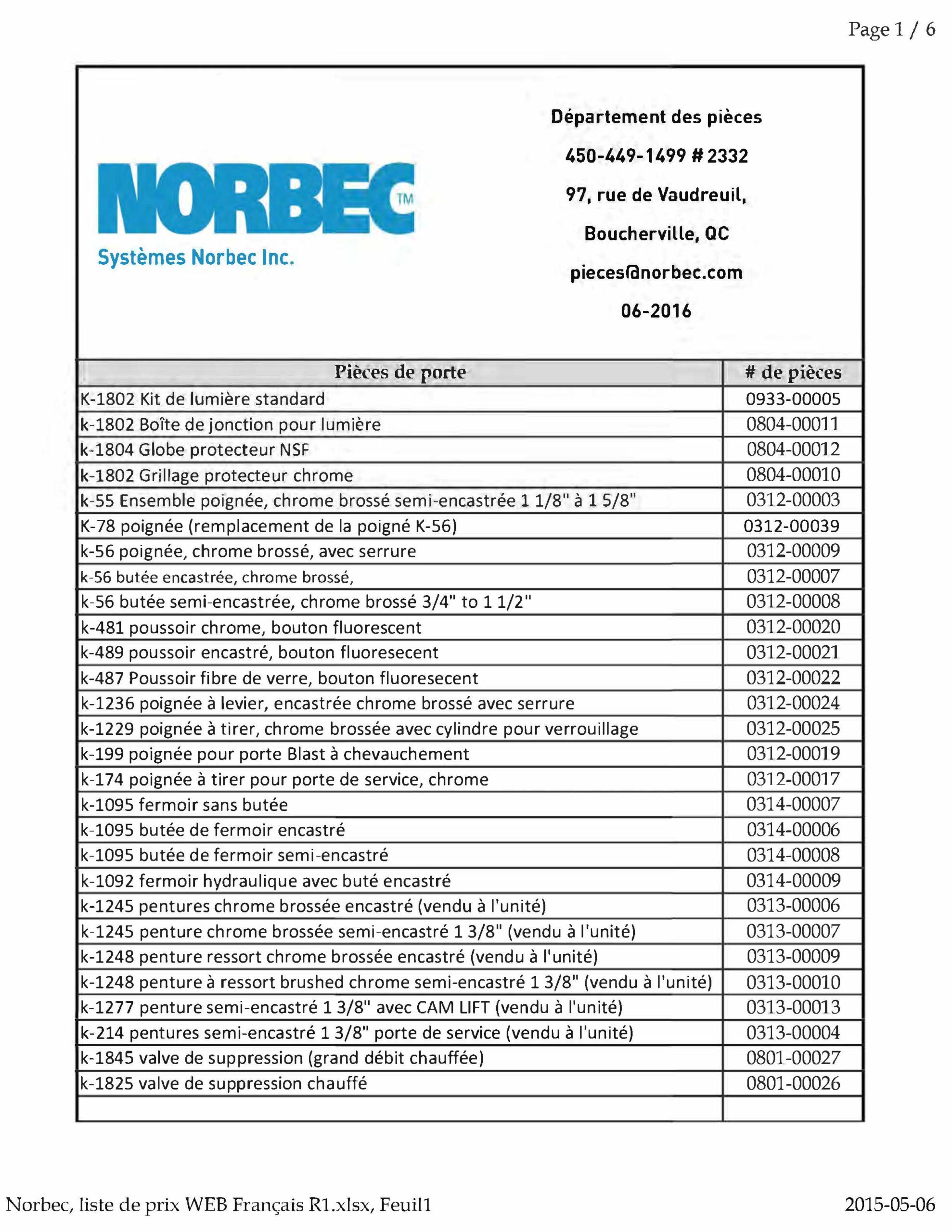 Pièces – Liste de pièces