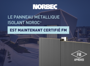 Norbec est fière d'annoncer que NOROC®, son panneau métallique isolant (PMI) résistant au feu, a officiellement reçu l'approbation FM. La certification FM Approvals signifie que NOROC® a passé avec succès des tests rigoureux en matière d'incendie, de performance et de qualité et fera l'objet d'une surveillance continue afin de garantir…